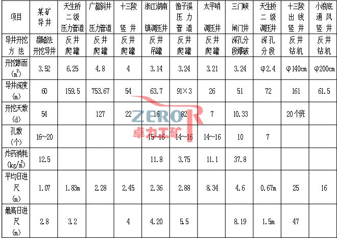 各種豎井導(dǎo)井開挖方法指標(biāo)比較 將各種豎井導(dǎo)井開挖方法的有關(guān)技術(shù)指標(biāo)列入表2-1