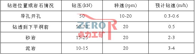 (2)、導(dǎo)孔鉆進參數(shù) 鉆進參數(shù)選擇主要依據(jù)地層條件,鉆進部位等多方面因素確定。一般按表3-3所示參數(shù)施工,但在施工時根據(jù)不同情況予以調(diào)整。