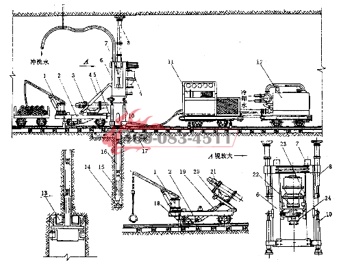 我國從20紀(jì)70年代開始自制反井鉆機(jī),目前已有多臺不同規(guī)格型式的反井鉆機(jī)在冶金和煤炭行業(yè)使用。反井鉆進(jìn)法具有機(jī)械化程度高,工人勞動(dòng)強(qiáng)度低,施工安全,施工速度快,效率高,成本低及施工過程中不破壞圍巖、井壁光滑、成井質(zhì)量好等一系列優(yōu)點(diǎn)。但使用設(shè)備較多,操作技術(shù)較復(fù)雜。在條件具備時(shí),應(yīng)優(yōu)先采用。