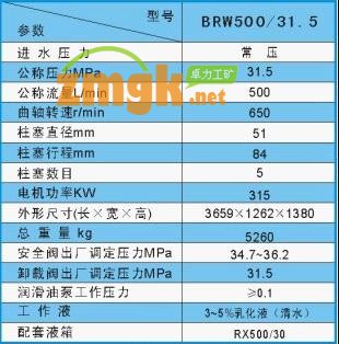 BRW500/31.5型乳化液泵技術(shù)參數(shù):