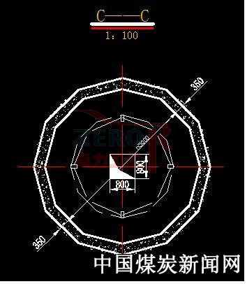 4、煤倉擴(kuò)刷。煤倉擴(kuò)刷以煤倉中心線為中心,由上向下進(jìn)行。使用毫秒延期電雷管、3號(hào)乳膠炸藥光面爆破施工。為預(yù)防一次起爆矸子過多和減少人工掏矸強(qiáng)度,可采用全斷面分2次起爆,先起爆煤倉內(nèi)圈再起爆外圈,使炮后煤倉內(nèi)外圈形成高低差,方便排矸,減少工人勞動(dòng)強(qiáng)度和節(jié)約工時(shí)。