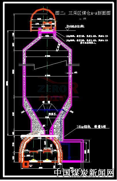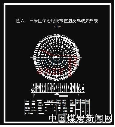 2、支護(hù)形式。(1)煤倉擴(kuò)刷期間:煤倉采用錨網(wǎng)噴作為臨時(shí)支護(hù),錨桿采用Φ20mm,長2.0m的螺紋金屬錨桿,錨桿間排距為750mm×800mm;金屬網(wǎng)規(guī)格為1560mm×900mm,噴厚為100mm。(2)煤倉擴(kuò)刷到位后:煤倉上口和倉身選用Φ20mm的螺紋鋼筋+混凝土澆灌,澆灌厚度為500mm。煤倉下口澆灌選用18kg鋼軌+Φ20mm的螺紋鋼筋聯(lián)合澆灌,煤倉下口澆灌厚度為1.0m。