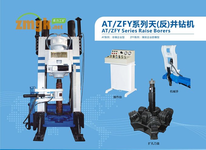 ZFY、AT系列天井鉆機(jī)主要用于礦山井下鉆孔和擴(kuò)通風(fēng)井、充填井、管道井等,也可以作為礦山地下掘進(jìn)大斷面天井和溜井之用。其中AT2000型和ZFY 1500型天井牙輪鉆機(jī)分別獲省部級(jí)一、二等獎(jiǎng)。